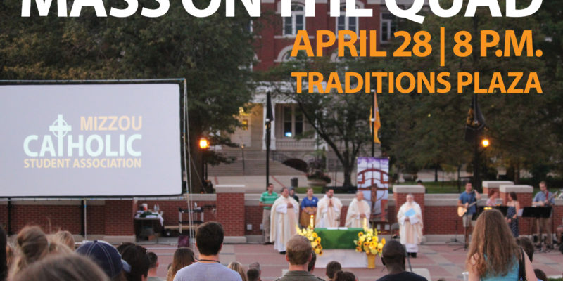 Please join us for Mass on the Quad on Sunday, April 28 at 8 p.m. on Traditions Plaza!