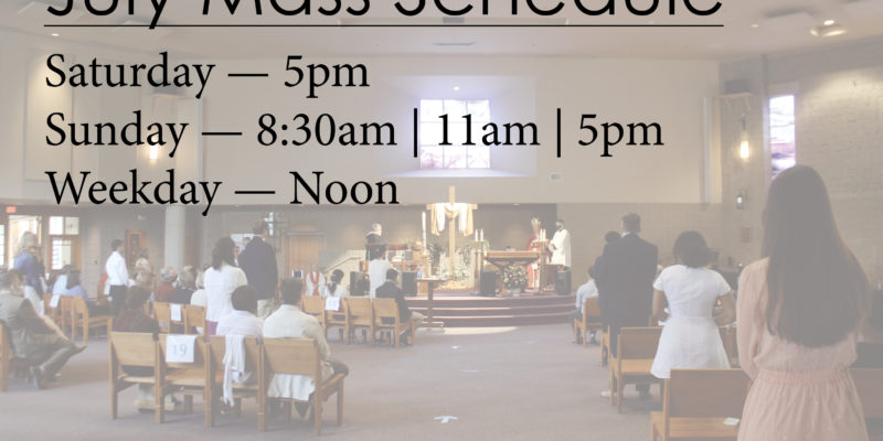 In July, Newman will be returning to its “usual” Mass schedule of four weekend Masses. Mass times will be: 5 p.m. Saturday and 8:30 a.m., 11 a.m., and 5 p.m. […]