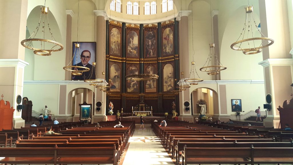 Above: the Metropolitan Cathedral of the Holy Savior in San Salvador, where St. Romero’s tomb is.